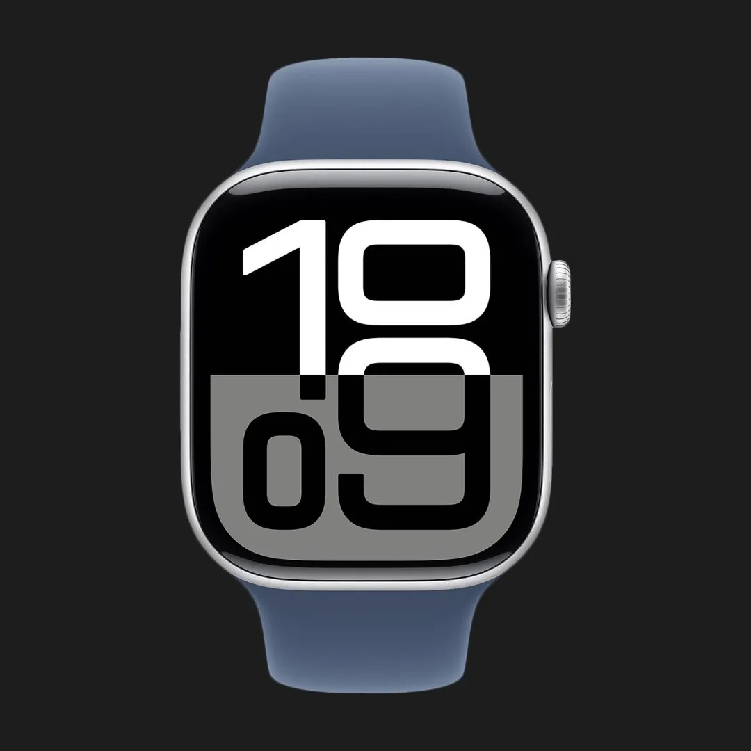 Apple Watch Series 10 GPS, 46mm Silver Aluminum Case with Denim Sport Band (M/L) (MWWM3)
