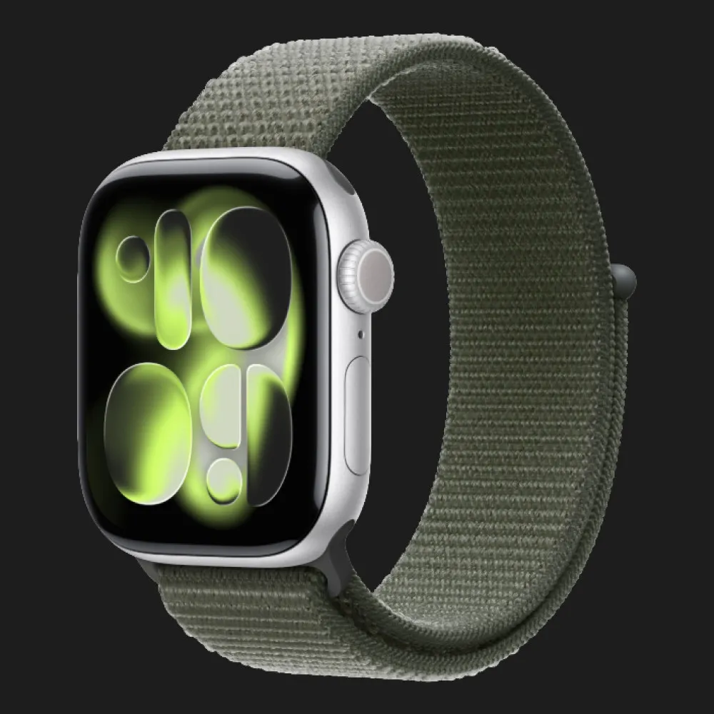 Apple Watch Series 11 GPS, 42mm Silver Aluminum Case with Forest Sport Loop