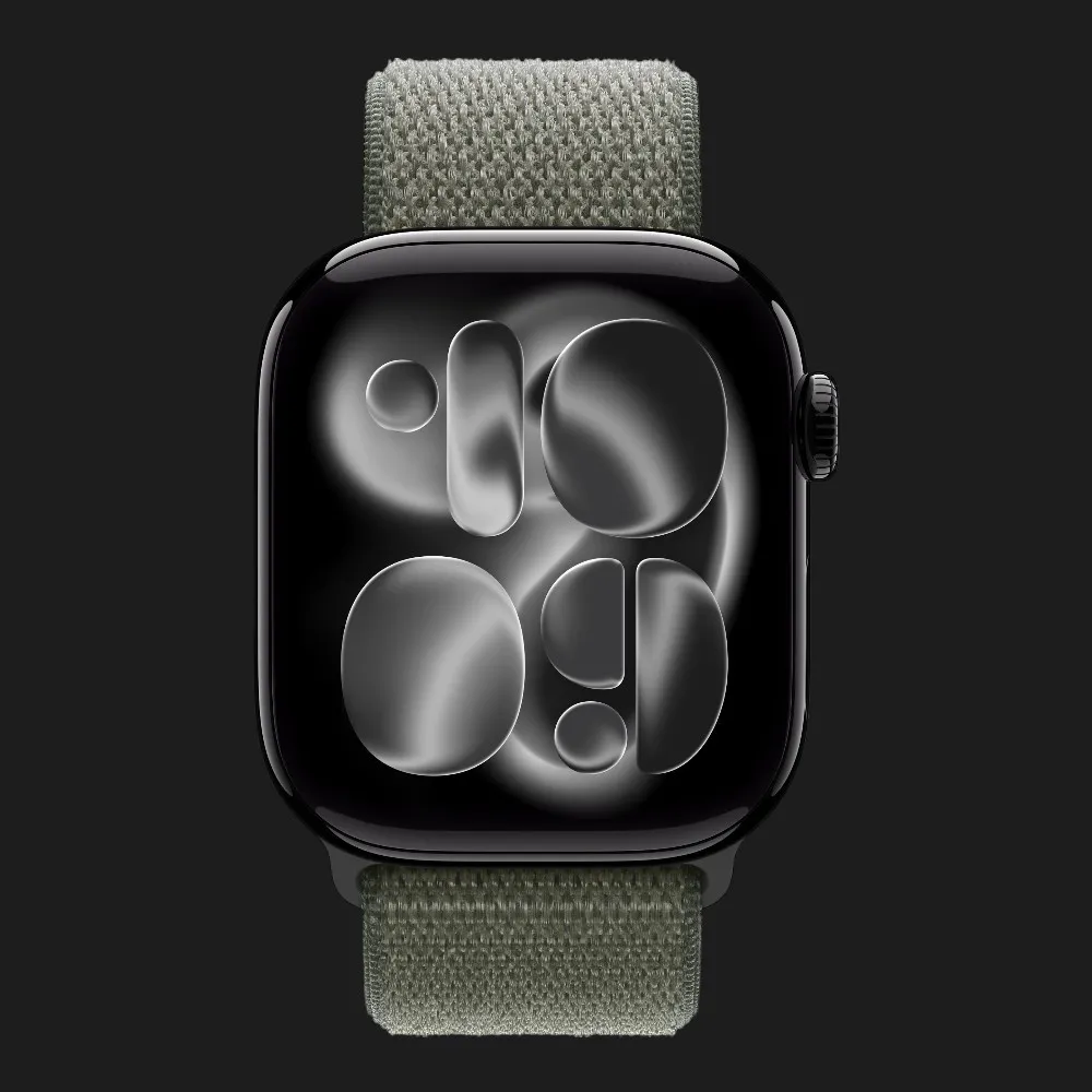 Apple Watch Series 11 GPS, 46mm Jet Black Aluminum Case with Forest Sport Loop
