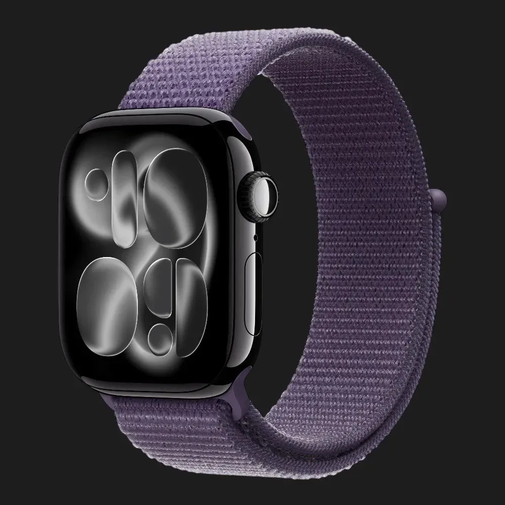 Apple Watch Series 11 GPS, 46mm Jet Black Aluminum Case with Purple Fog Sport Loop