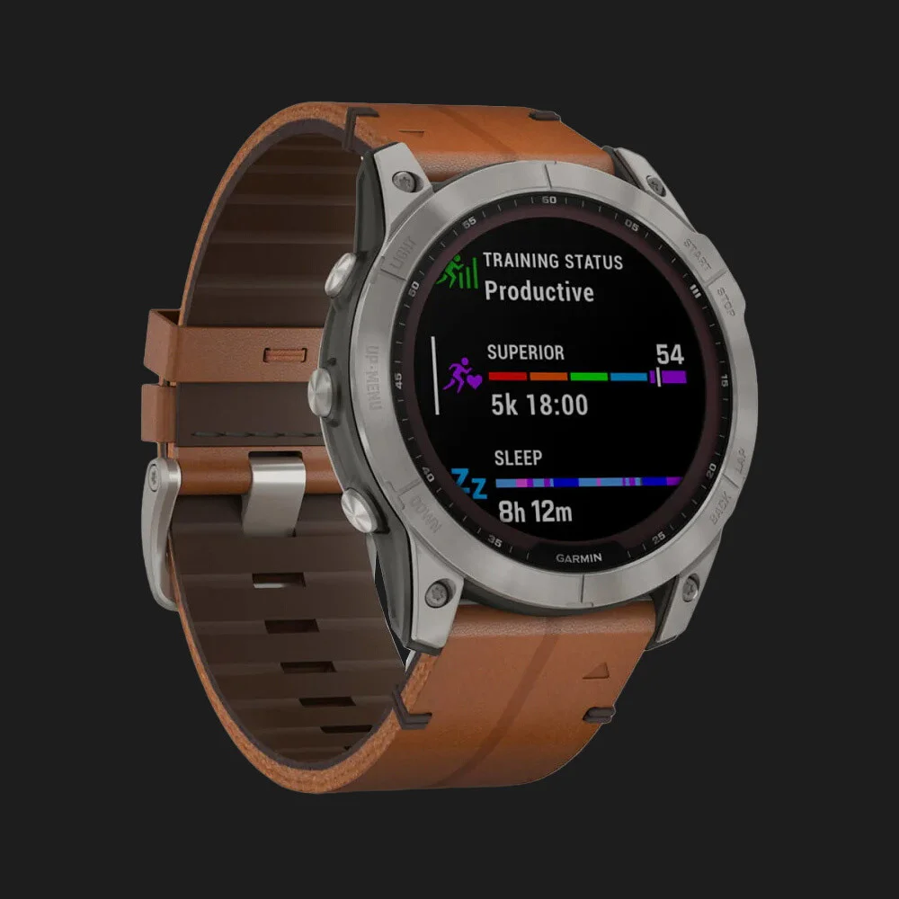 Garmin Fenix 7X Sapphire Solar Titanium with Chestnut Leather Band