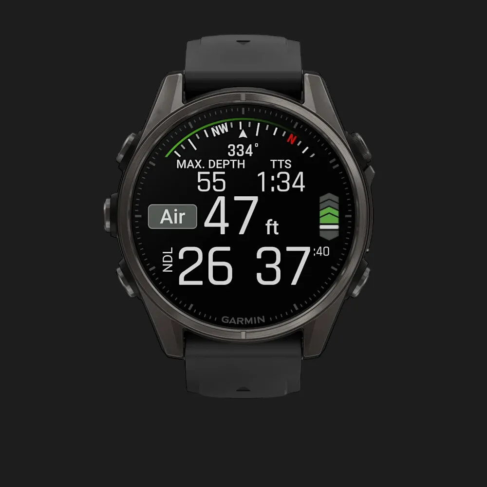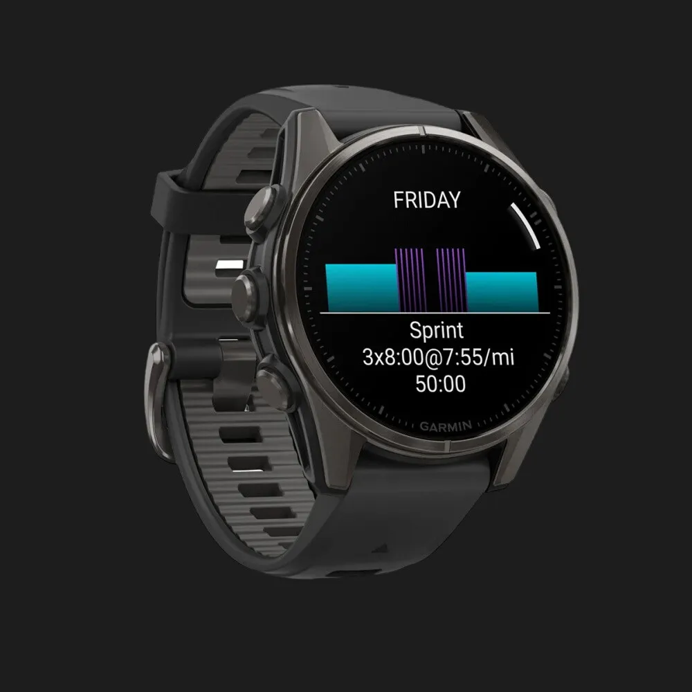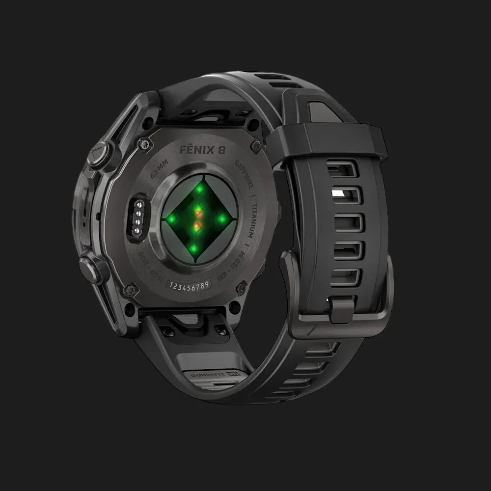 Garmin Fenix 8 43mm AMOLED Sapphire Carbon Gray DLC Titanium with Black/Pebble Gray Silicone Band