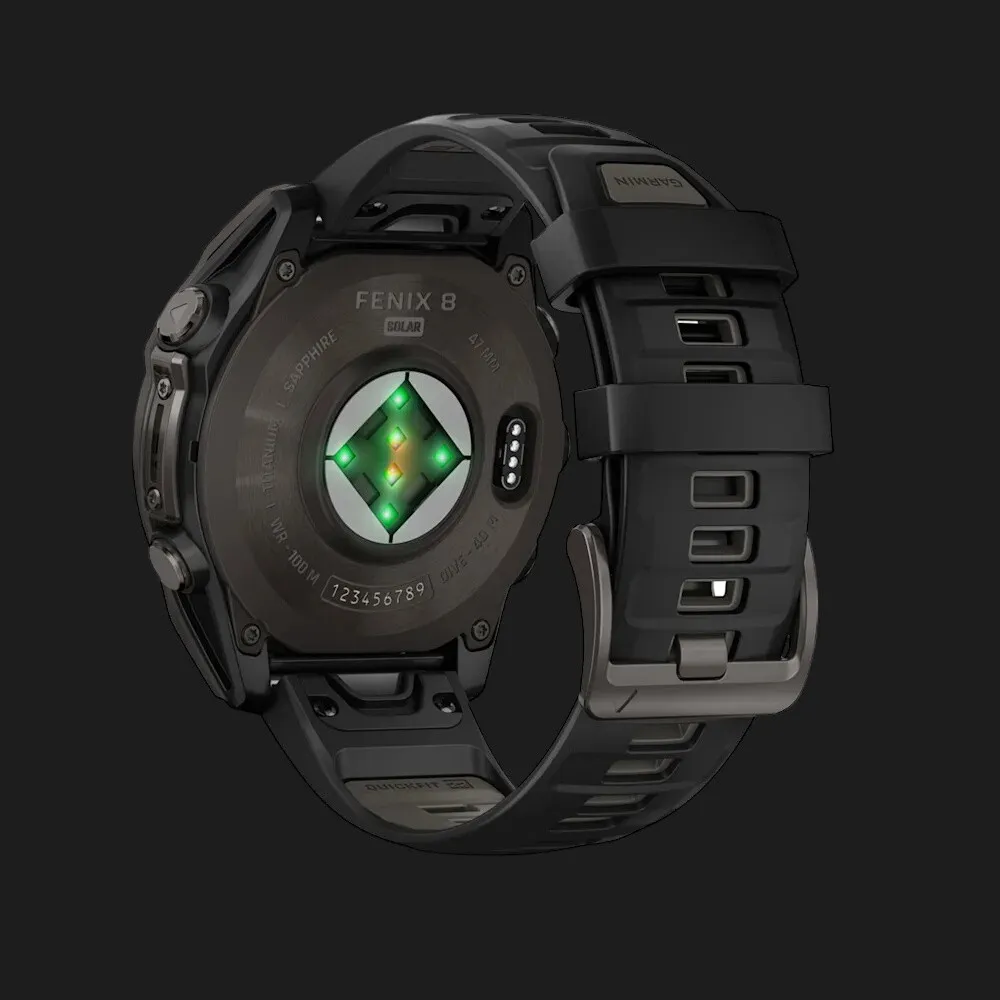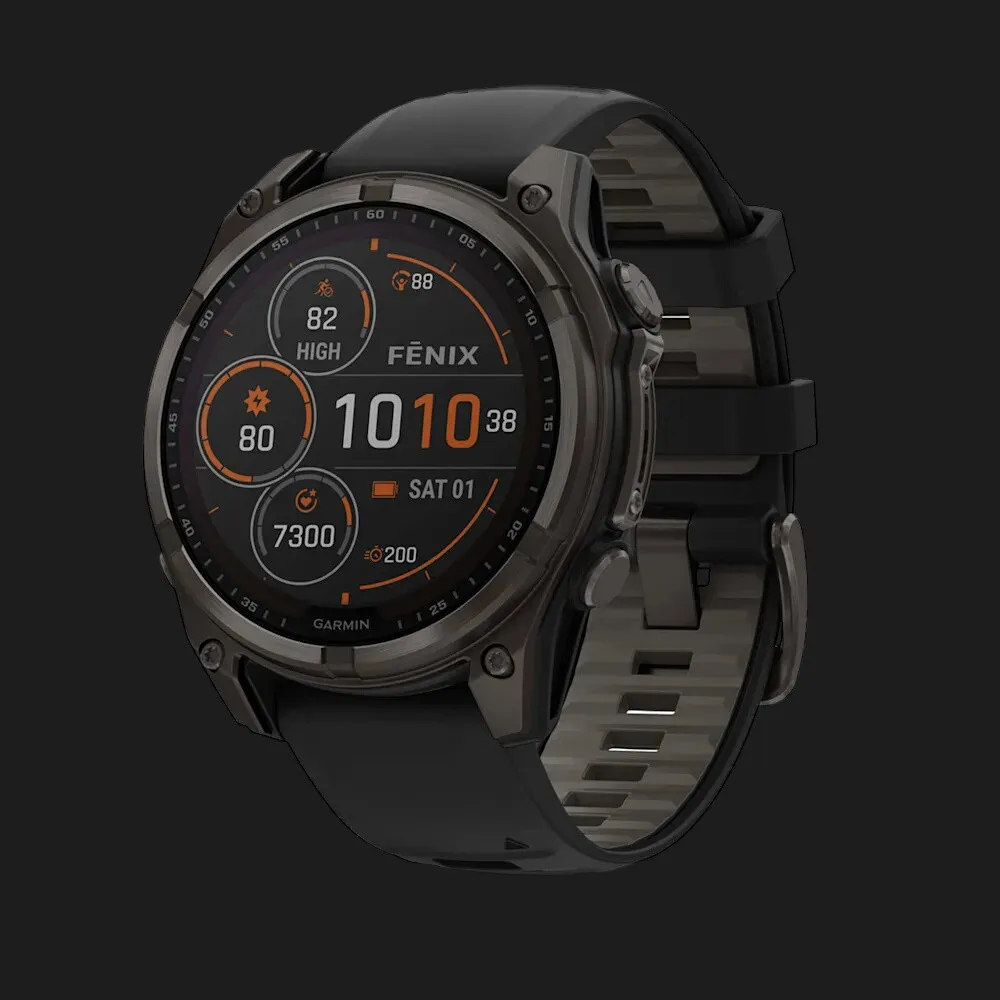 Garmin Fenix 8 47mm Solar Sapphire Carbon Gray DLC Titanium with Black/Pebble Gray Silicone Band
