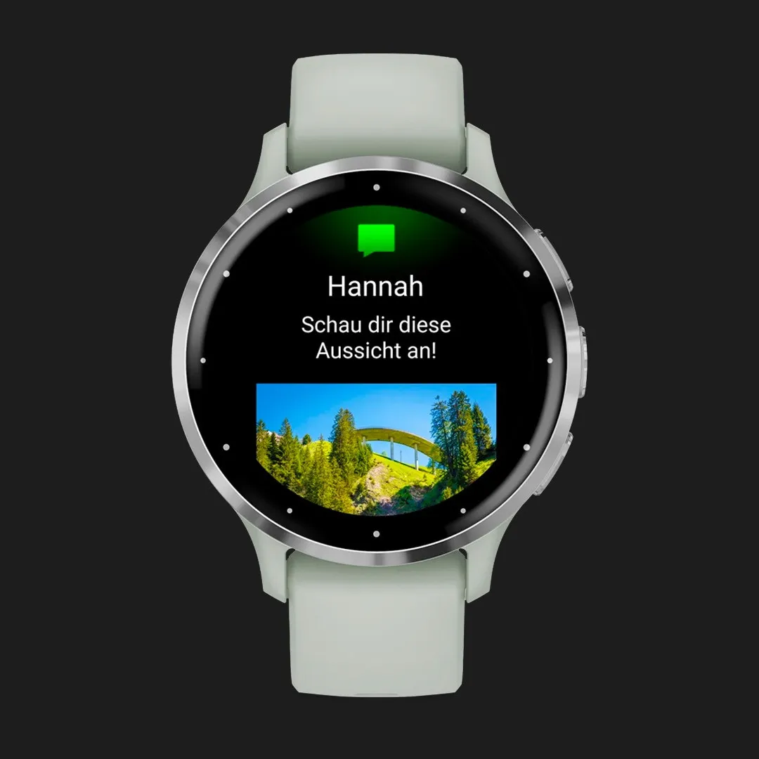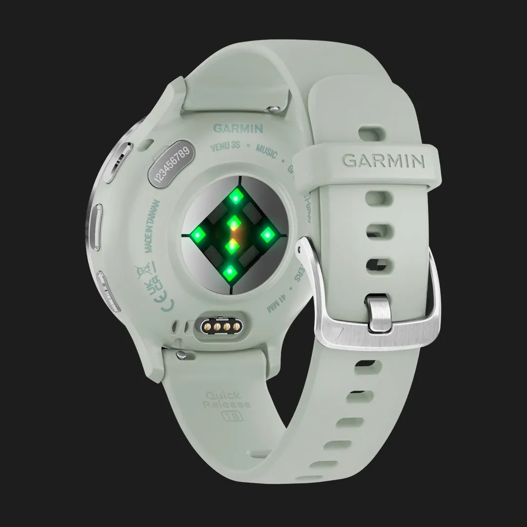 Garmin Venu 3S Silver Stainless Steel Bezel with Sage Gray Case and Silicone Band