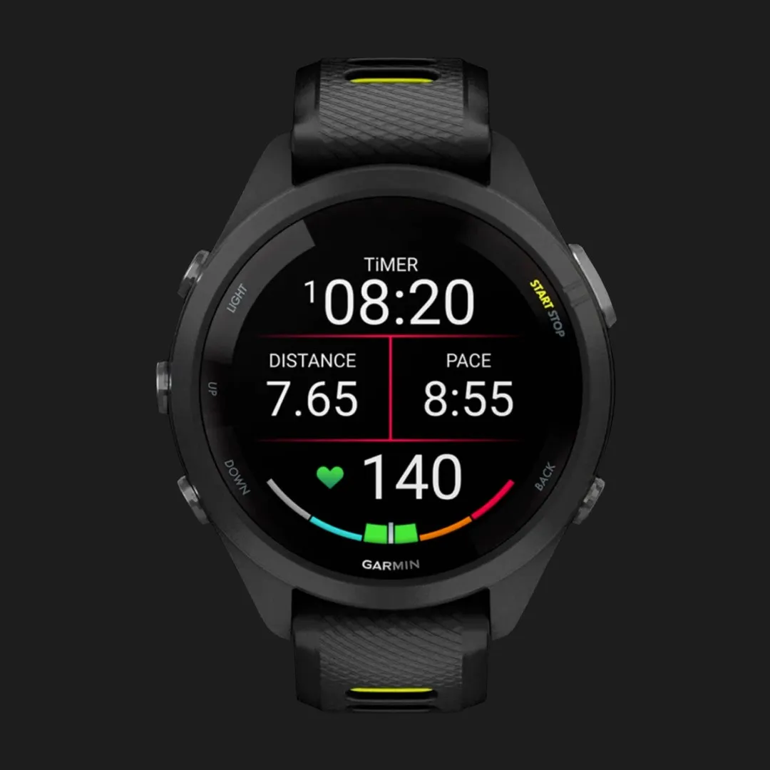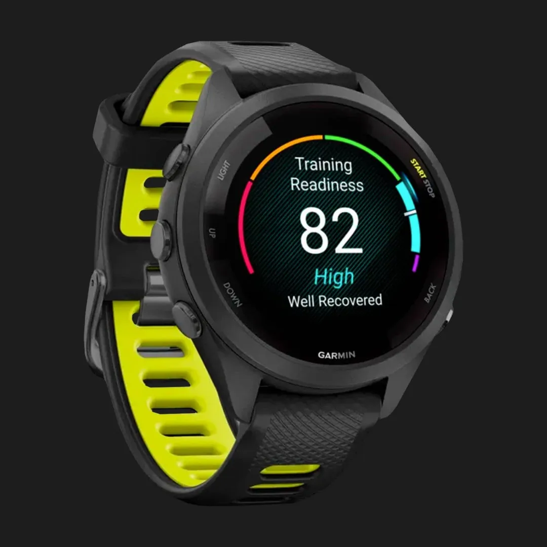 Garmin Forerunner 265S Black Bezel and Case with Black/Amp Yellow Silicone Band