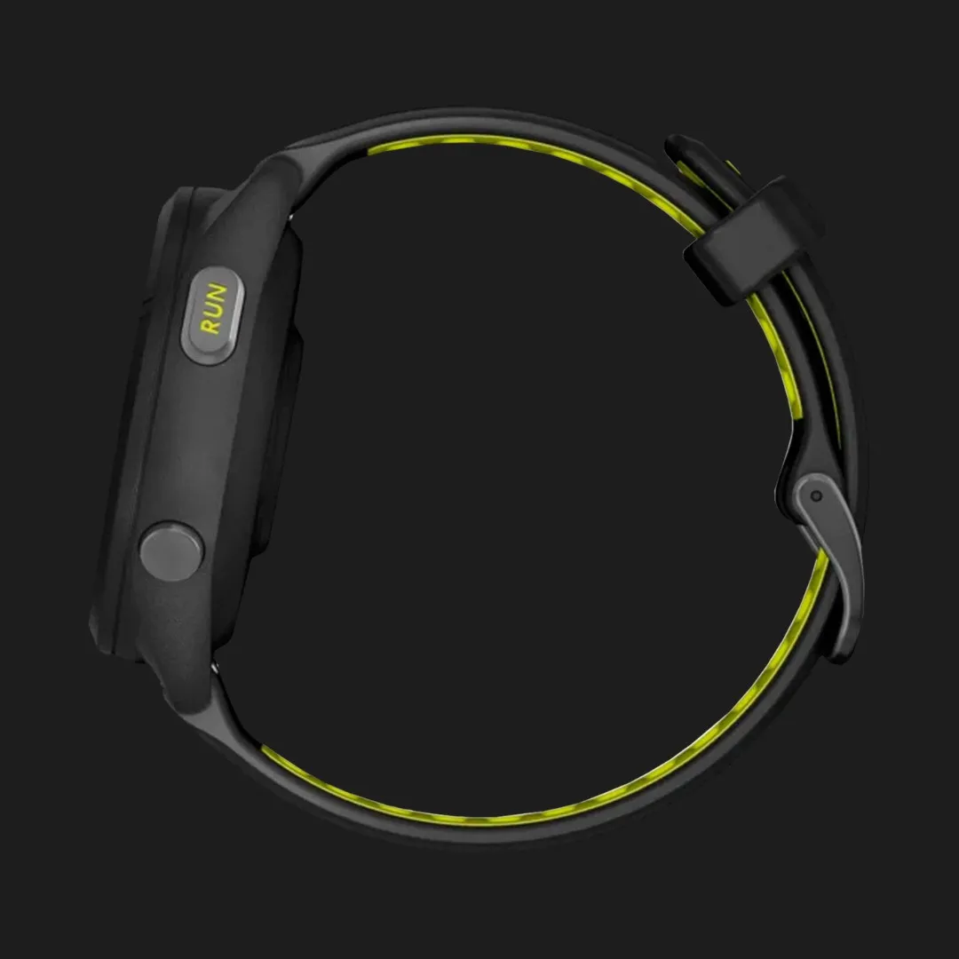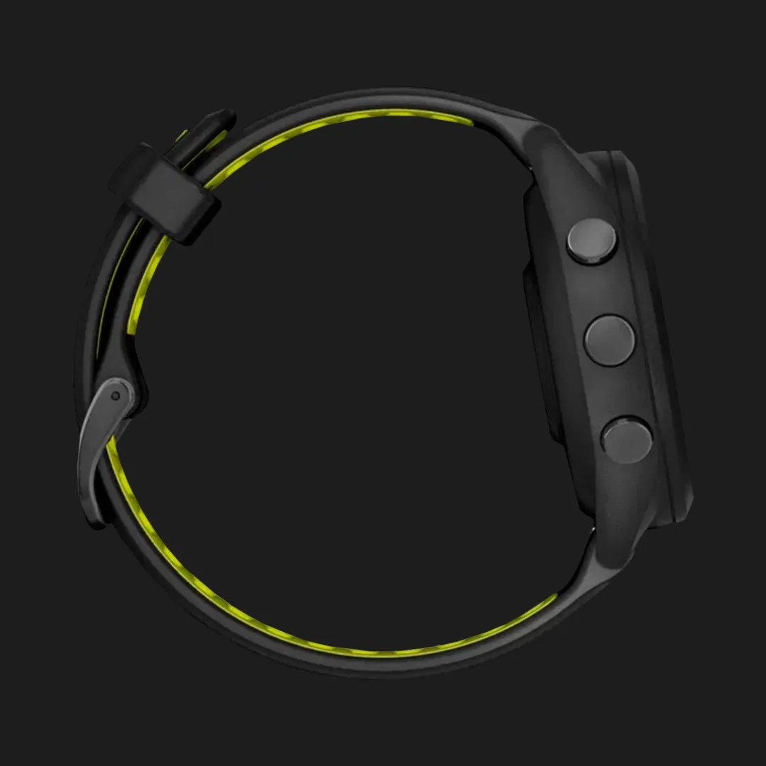 Garmin Forerunner 965 Carbon Gray DLC Titanium Bezel with Black Case and Amp Yellow/Black Silicone Band
