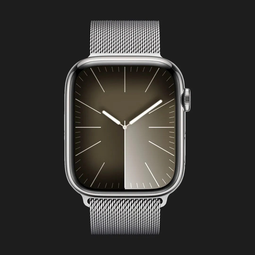 Apple Watch Series 9 45mm GPS + LTE, Silver Stainless Steel Case with Silver Milanese Loop (MRMQ3)
