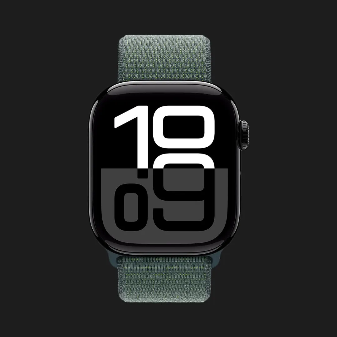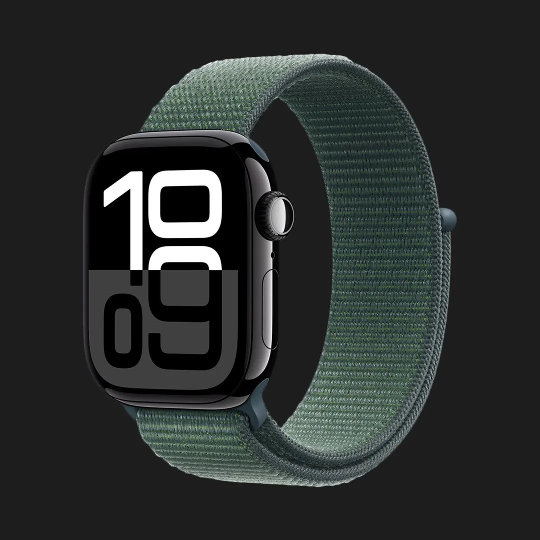 Apple Watch Series 10 GPS 46mm Jet Black Aluminum Case with Lake Green Sport Loop
