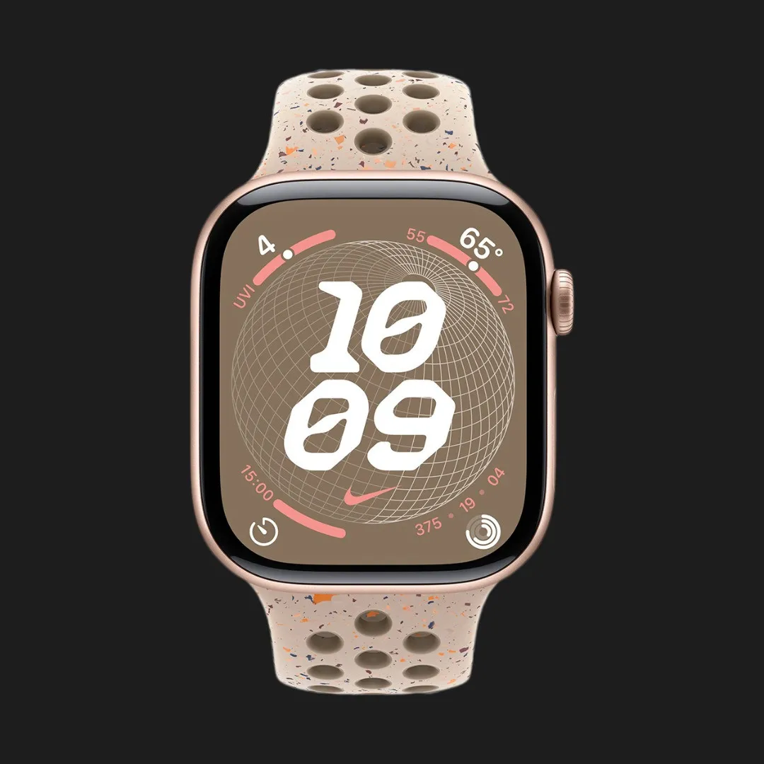 Apple Watch Series 10 GPS, 46mm Rose Gold Aluminum Case with Desert Stone Nike Sport Band (M/L)